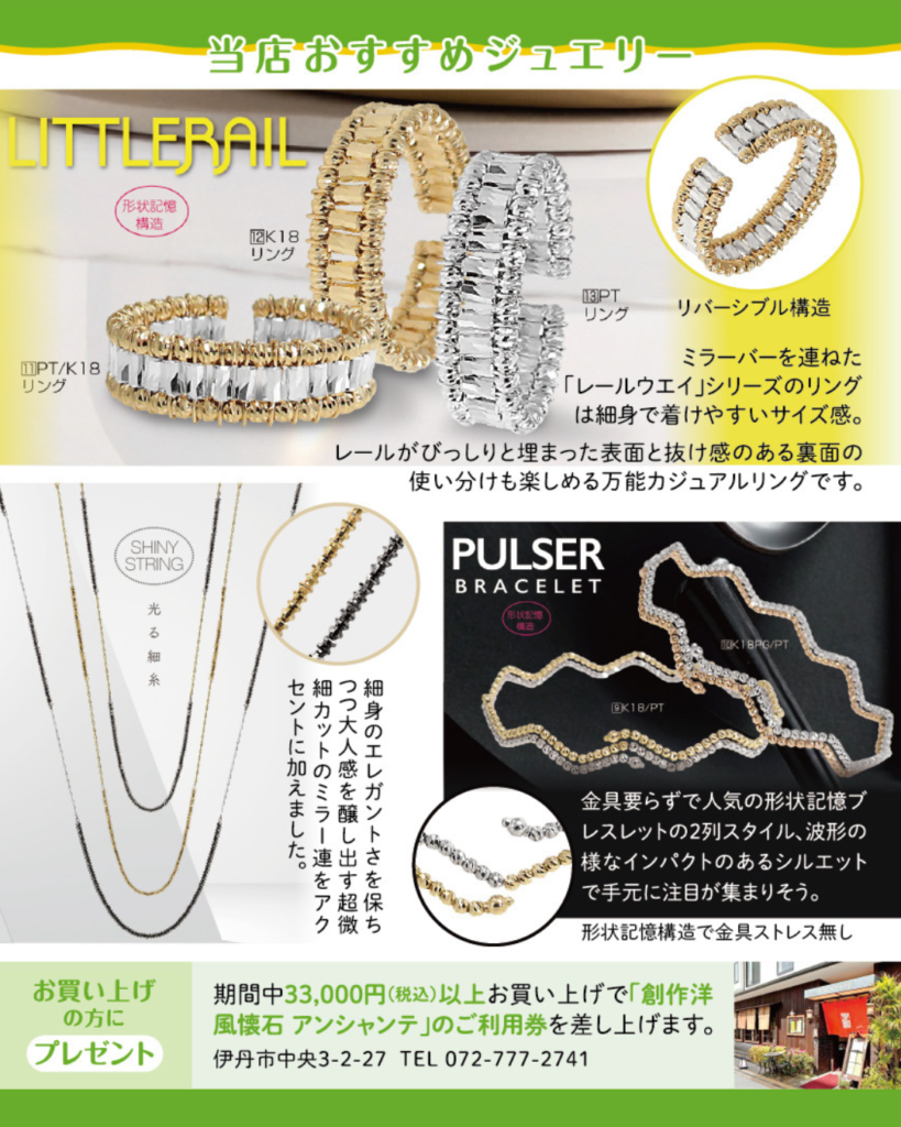 なお、期間中33000円(税込)お買い上げの方に、「創作洋風懐石 アンシャンテ」さまのご利用券をプレセントいたします。